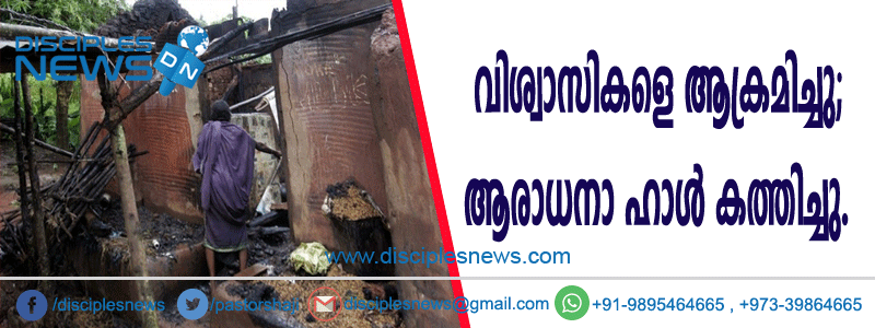 മദ്ധ്യപ്രദേശില് പ്രാര്ത്ഥിച്ചുകൊണ്ടിരുന്ന വിശ്വാസികളെ ആക്രമിച്ചു; ആരാധനാ ഹാള് കത്തിച്ചു