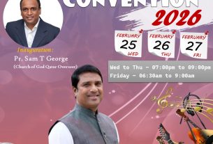 ഇന്ന് രാവിലെ കൊട്ടാരക്കര സെന്റർ പ്രാദേശിക സഭകളുടെ സൺഡേസ്കൂൾ വിദ്യാർത്ഥികളുടെയും അധ്യാപകരുടെയും സുവിശേഷ വിളംബര ജാഥ നടന്നു. ഫെബ്രുവരി 11 ന് വൈകിട്ട് 3 ന് ആയിരക്കണക്കിന് വിശ്വാസികളും ശുശ്രൂഷകരും പങ്കെടുക്കുന്ന സുവിശേഷ വിളംബര ജാഥ കൊട്ടാരക്കര ടൗൺ വഴി കൺവൻഷൻ ഗ്രൗണ്ടിൽ സമാപിക്കുന്നതോടെ കൺവൻഷന് തുടക്കമാകും.